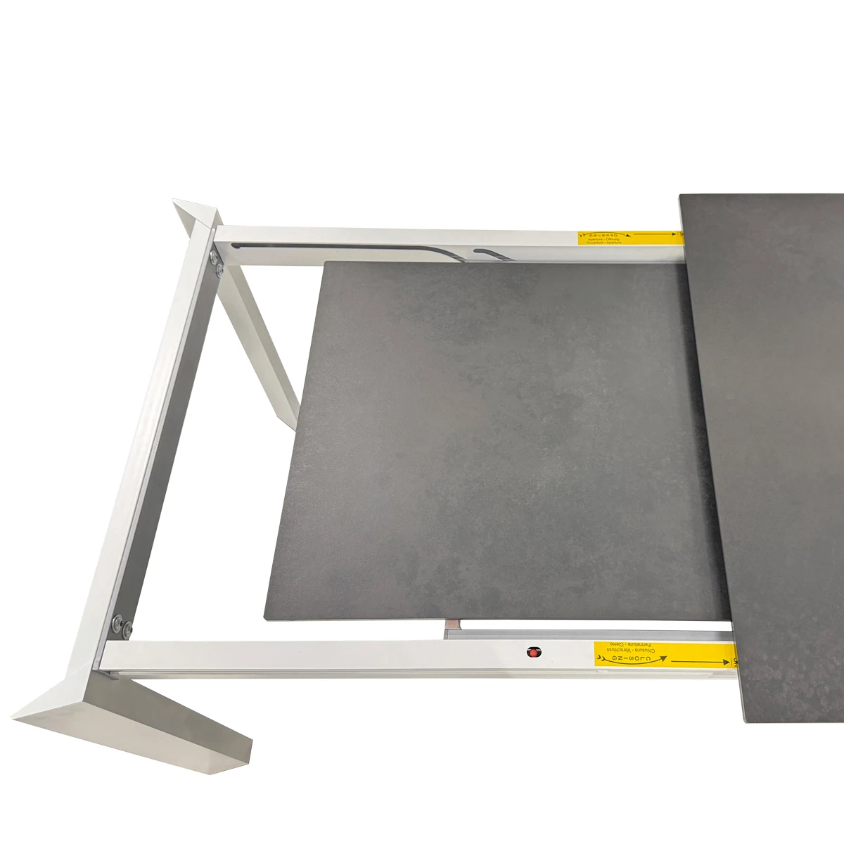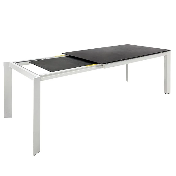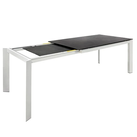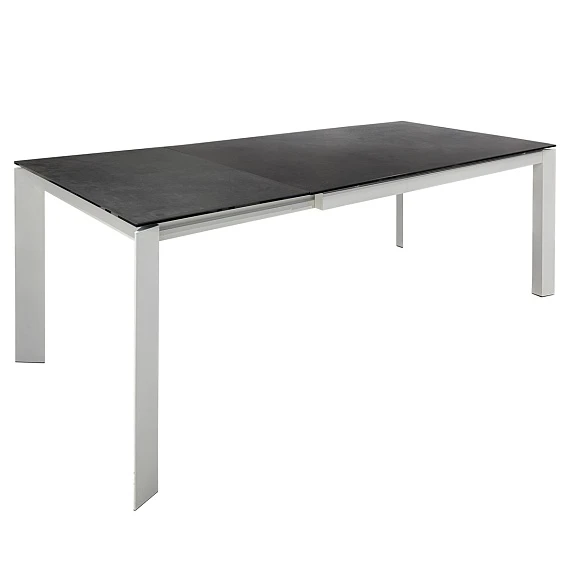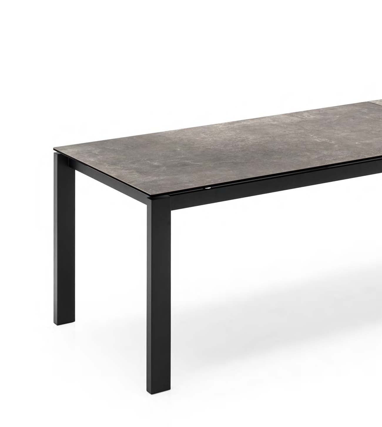 Раздвижной стол BARON: прямоугольная столешница из разных материалов - ламината, закаленного стекла, комбинированной керамики и стекла или FENIX NTM®. Ножки по периметру и рама из металла.