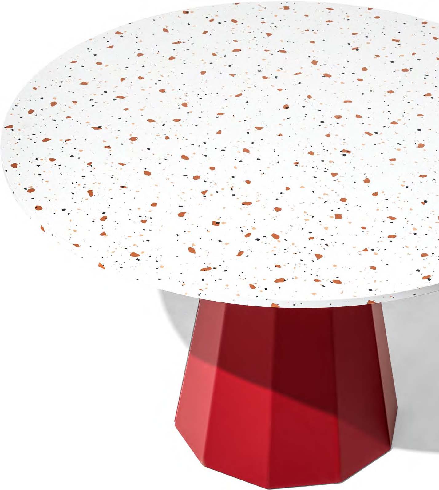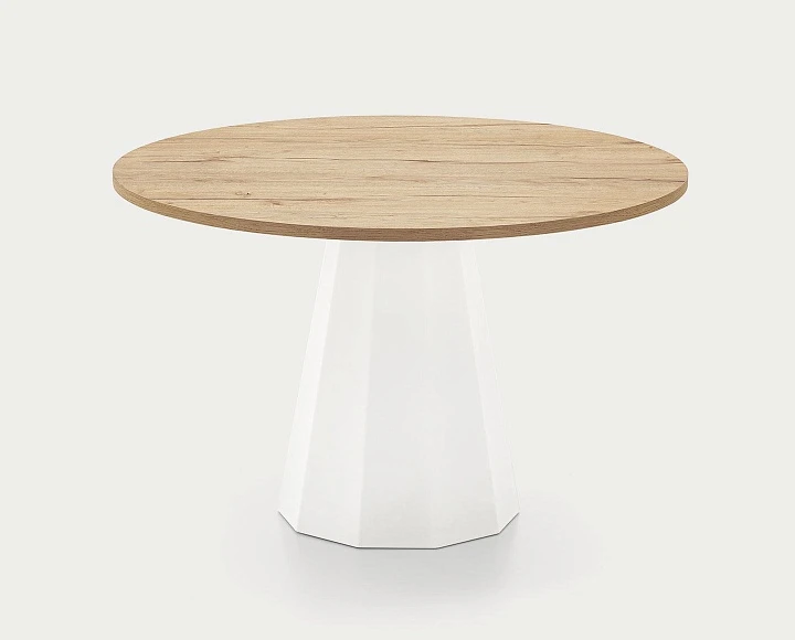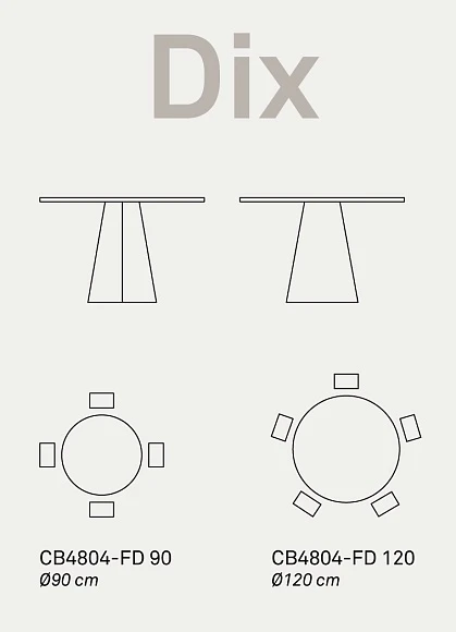 Нераздвижной круглый стол DIX установлен на десятигранной конической подставке из металла. Имеет регулируемые подпятники компенсирующие неровность пола.