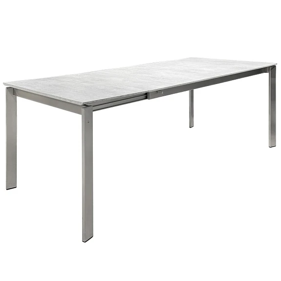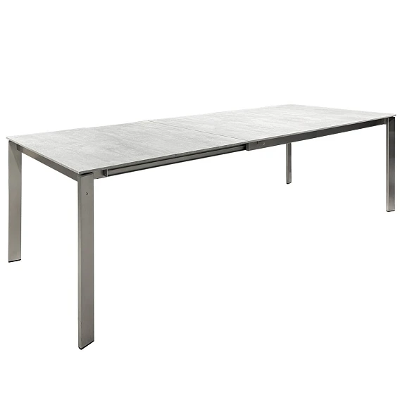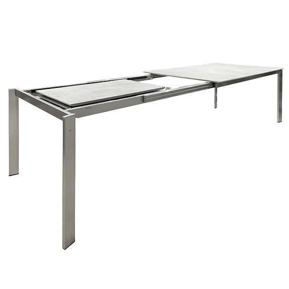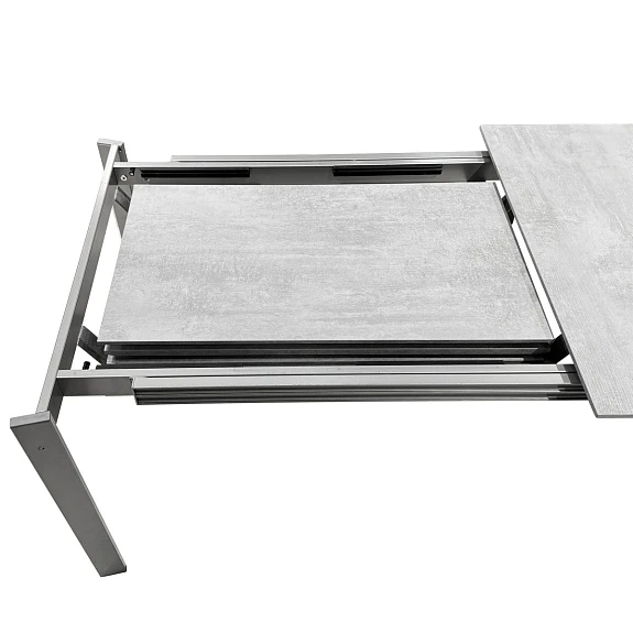 Раскладка стола производится путём удлинения металлической рамы, таким образом, обеспечивается свободная рассадка 6-12 человек (для комфортного раздвижения стола в ножках установлены ролики).