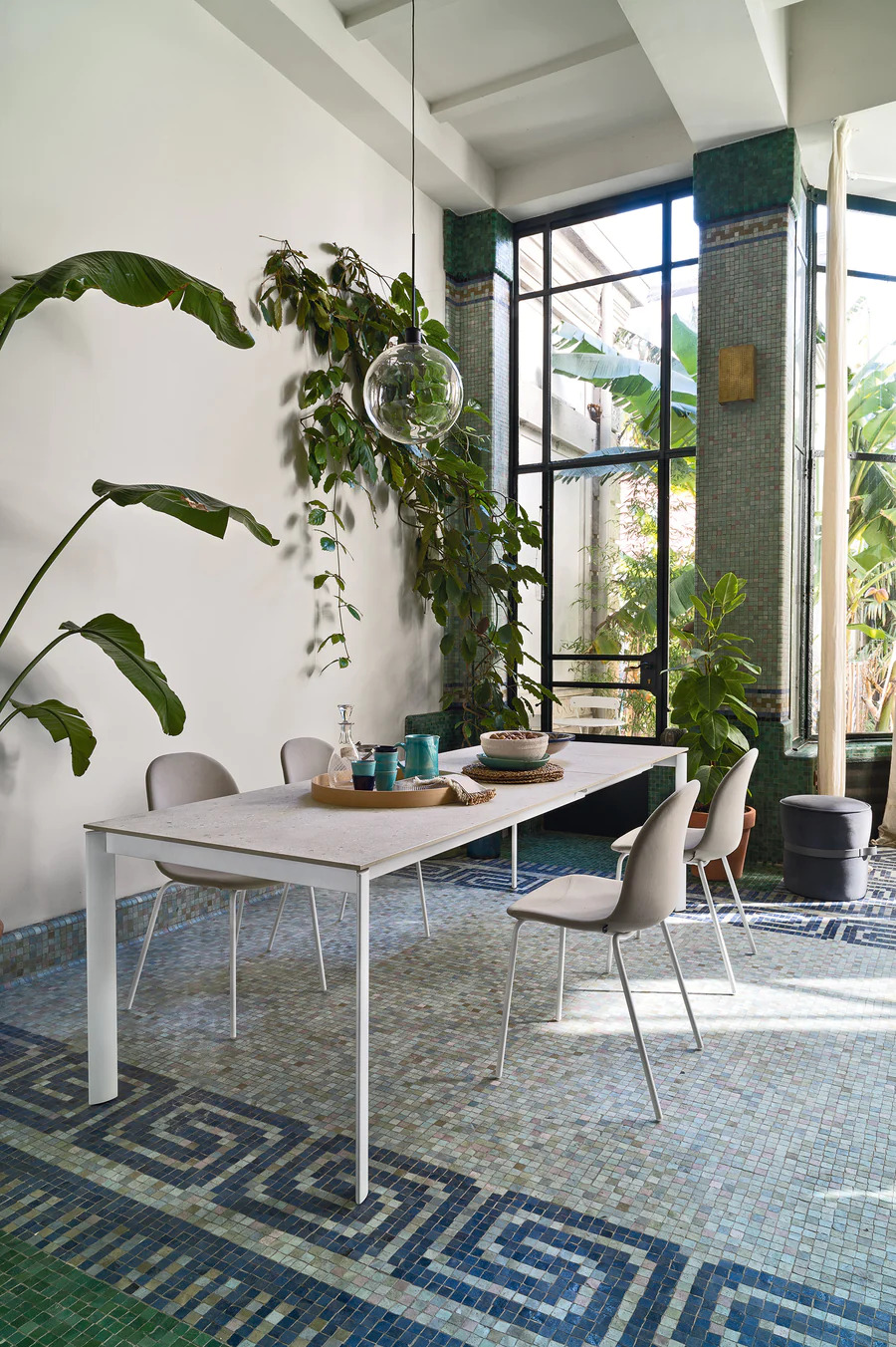 Раскладка стола производится путём удлинения металлической рамы, таким образом, обеспечивается свободная рассадка 6-8 человек, для модификации А и от 6 до 10 человек, для модификации В (для комфортного раздвижения стола в ножках установлены ролики). Вставки, шириной 45 см, находятся внутри стола, вставляются вручную.