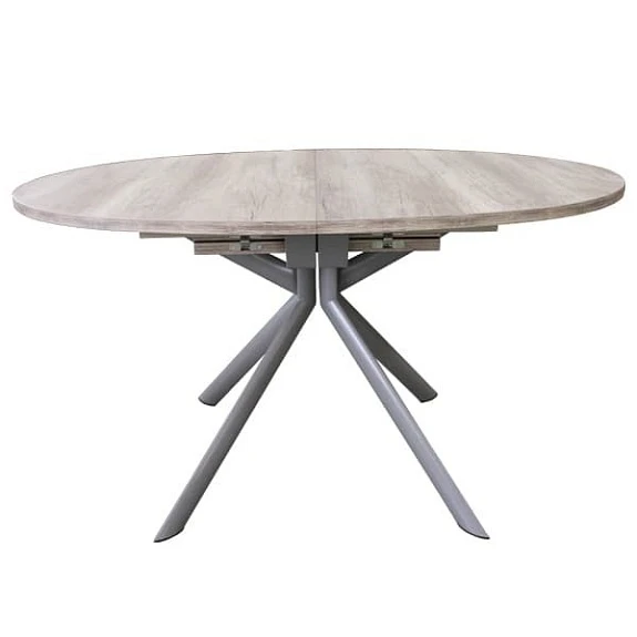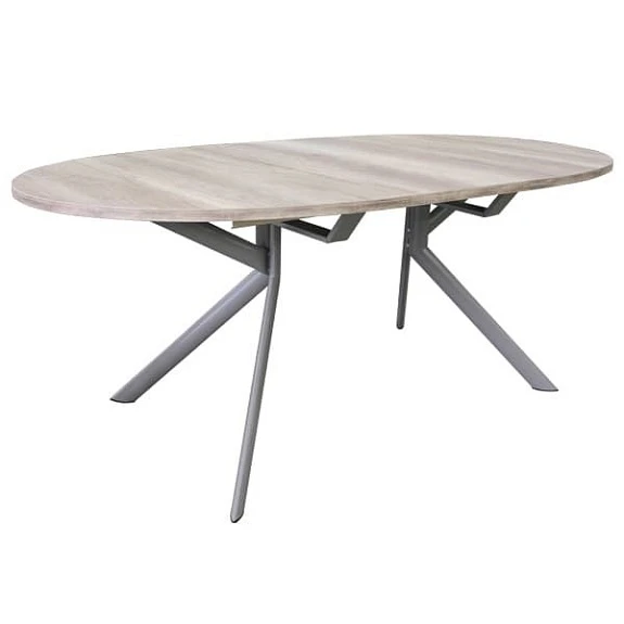 Овальный стол, в современном стиле, на металлическом основание (4 ножки, исходящие из центра, в сечении, имеют эллиптическую форму). Столешница может быть выполнена из трёх видов материала: ламинат Feelwood, закалённое стекло и стеклокерамика.