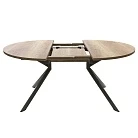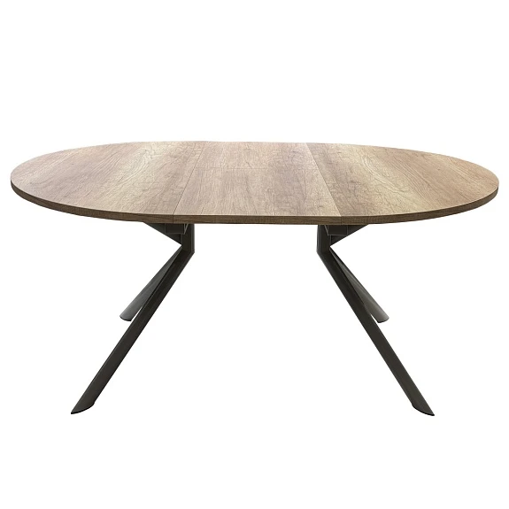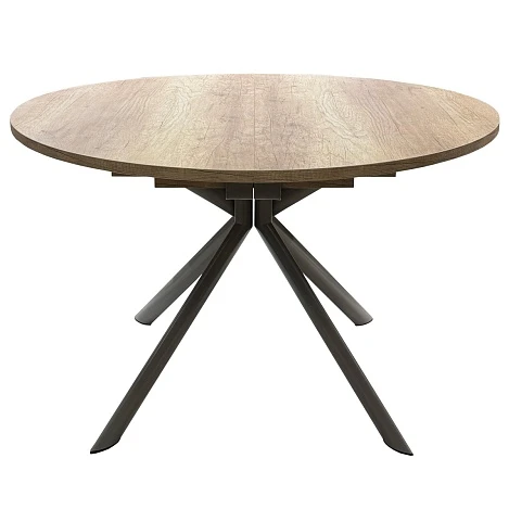 Круглый стол, в современном стиле, диаметром 120 см, на металлическом основание (4 ножки, исходящие из центра, в сечении, имеют эллиптическую форму). Столешница может быть выполнена из трёх видов материала: ламинат Feelwood, закалённое стекло и стеклокерамика.