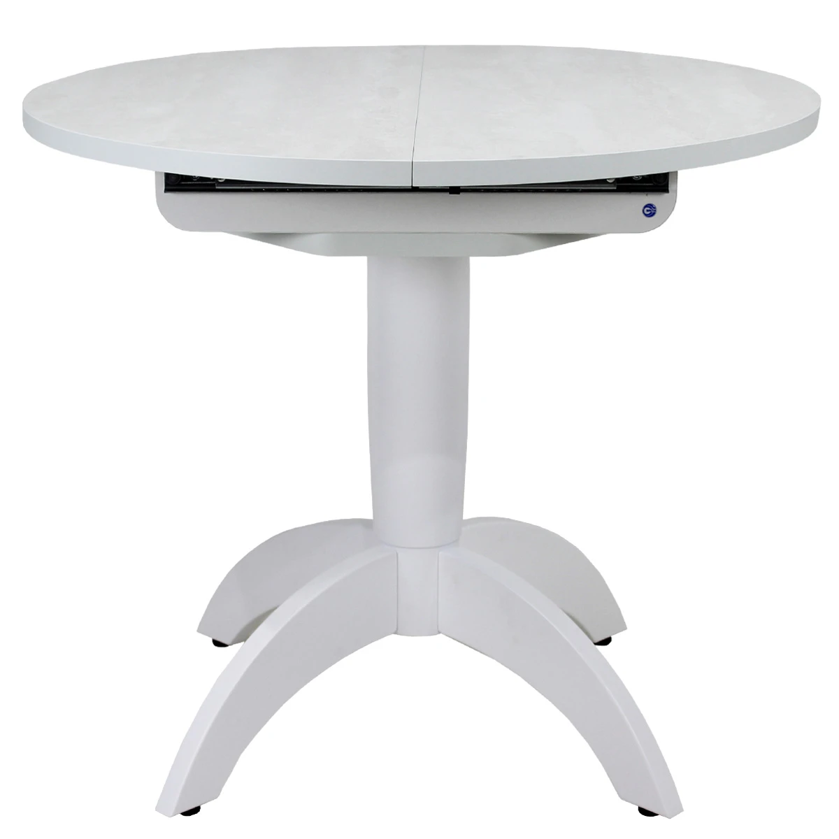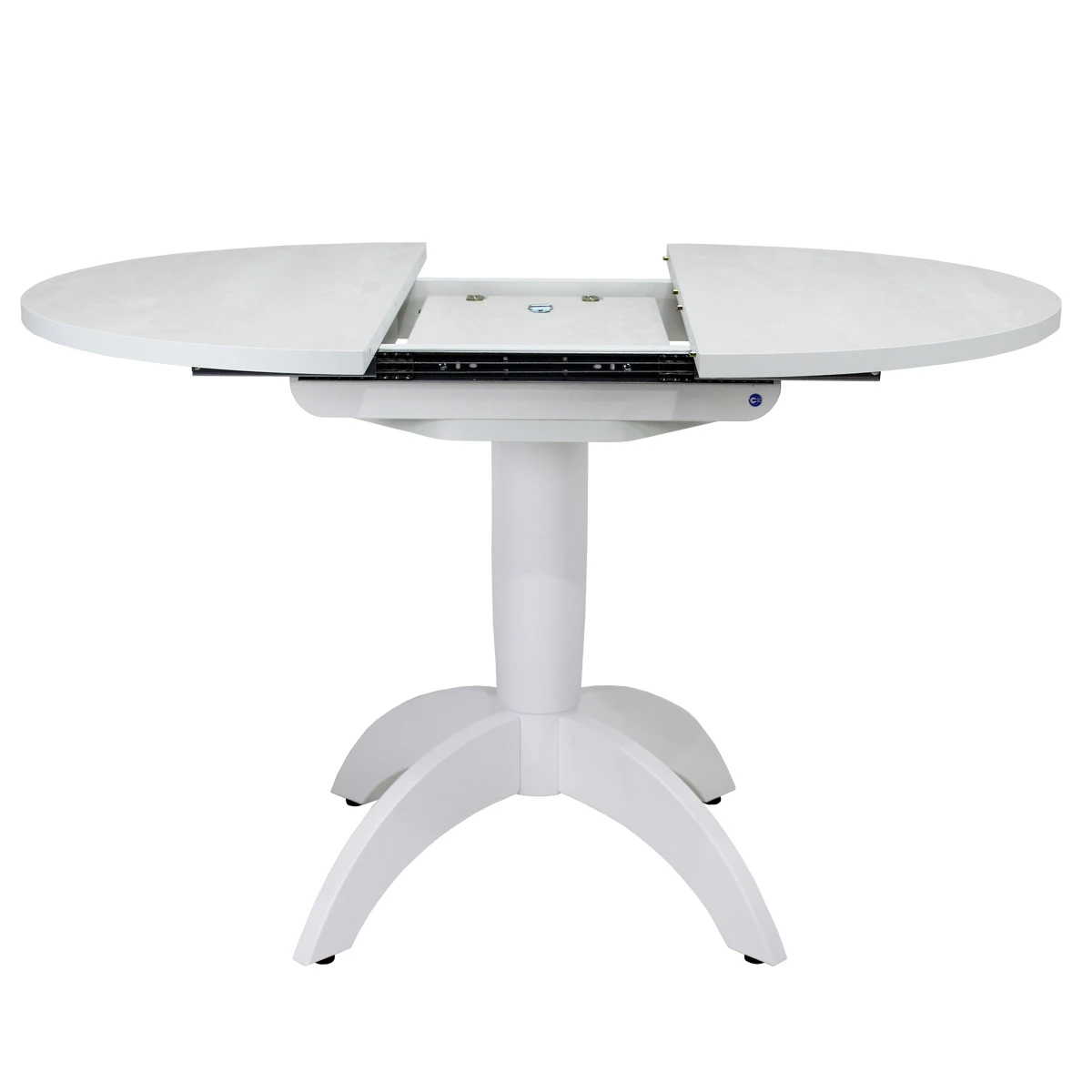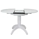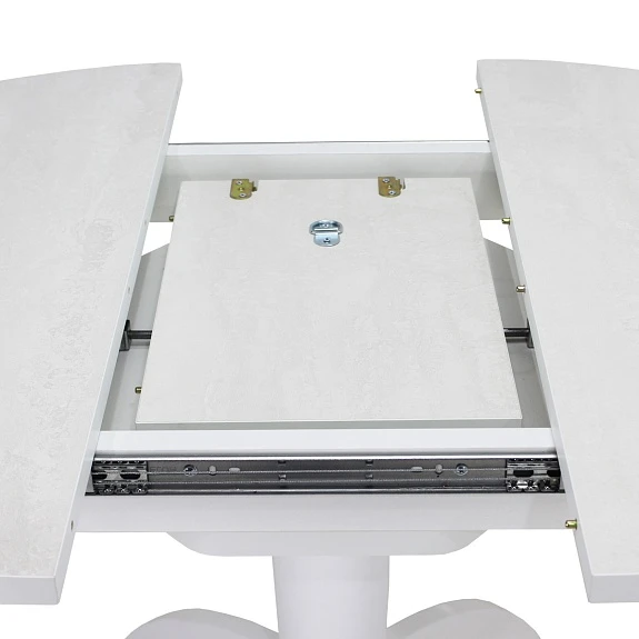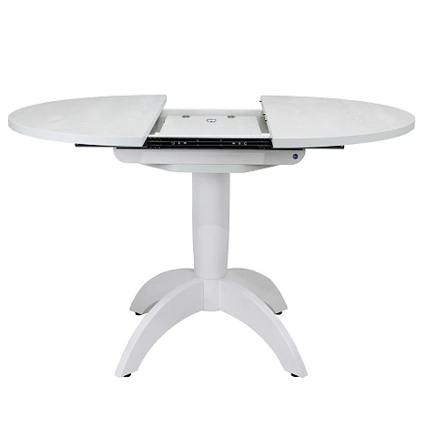 Вставка-«бабочка» исполняется из того же материала, что и основная столешница - это позволяет раздвигать стол без ущерба для эстетики. Для варианта со стеклянной столешницей, вставка изготавливается в цвет основания стола и без стекла.Раскладка производится путём раздвижения столешницы.