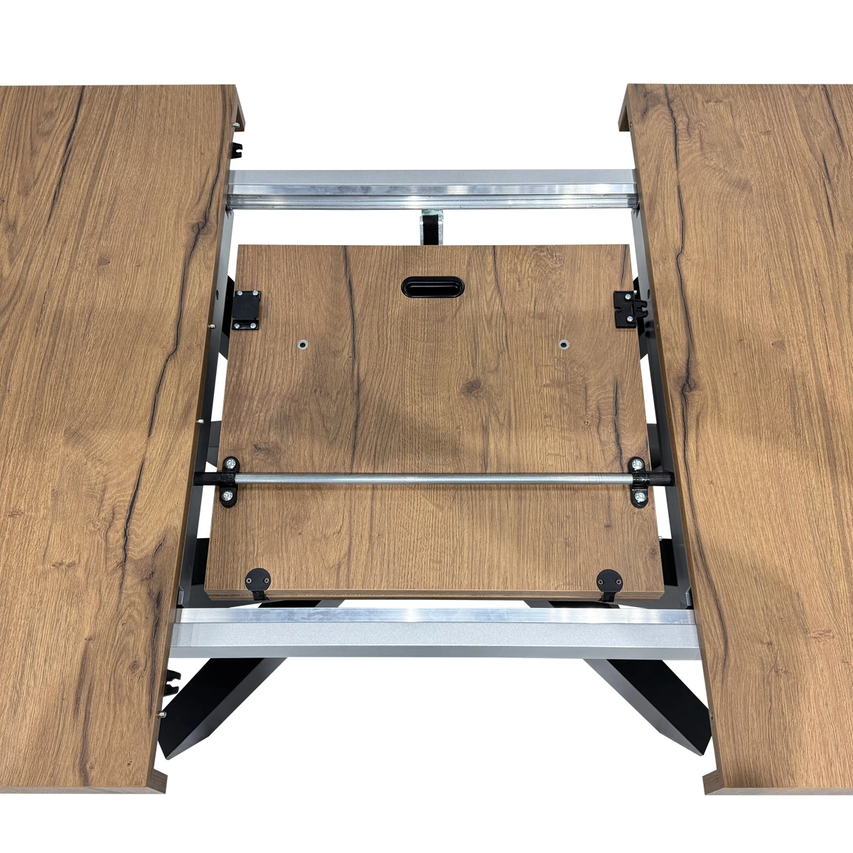 Надёжный, современный, прямоугольный стол с раздвижной столешницей из ламината Feelwood. Вставка-бабочка изготавливается из того же цвета ламината, что позволяет раздвигать стол, без ущерба для эстетики.