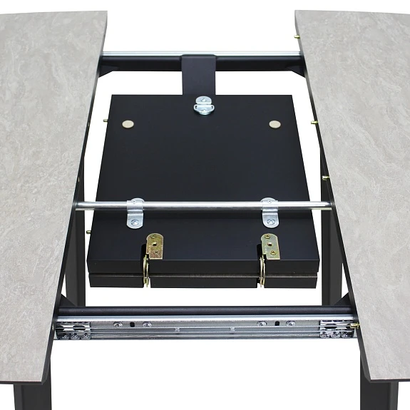Столешница выполнена из современного HPL пластика, который имеет высокие показатели износостойкости. Сплошная центральная вставка исполняется из того же материала, что и основная столешница - это позволяет раздвигать стол без ущерба для эстетики.