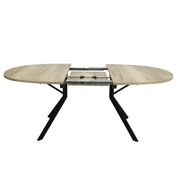 Раскладка стола производится путём растягивания и удлинения рамы вместе с опорами, таким образом обеспечивается устойчивое положение модели и свободная рассадка 6-8 человек.