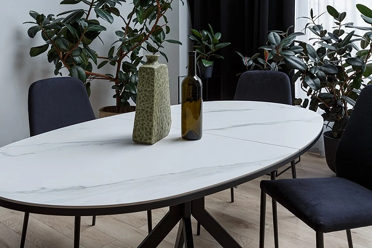 Cтол ОТТАВА-2 89х150/195 керамика бел.мрамор мат/муар.чер ВС/512