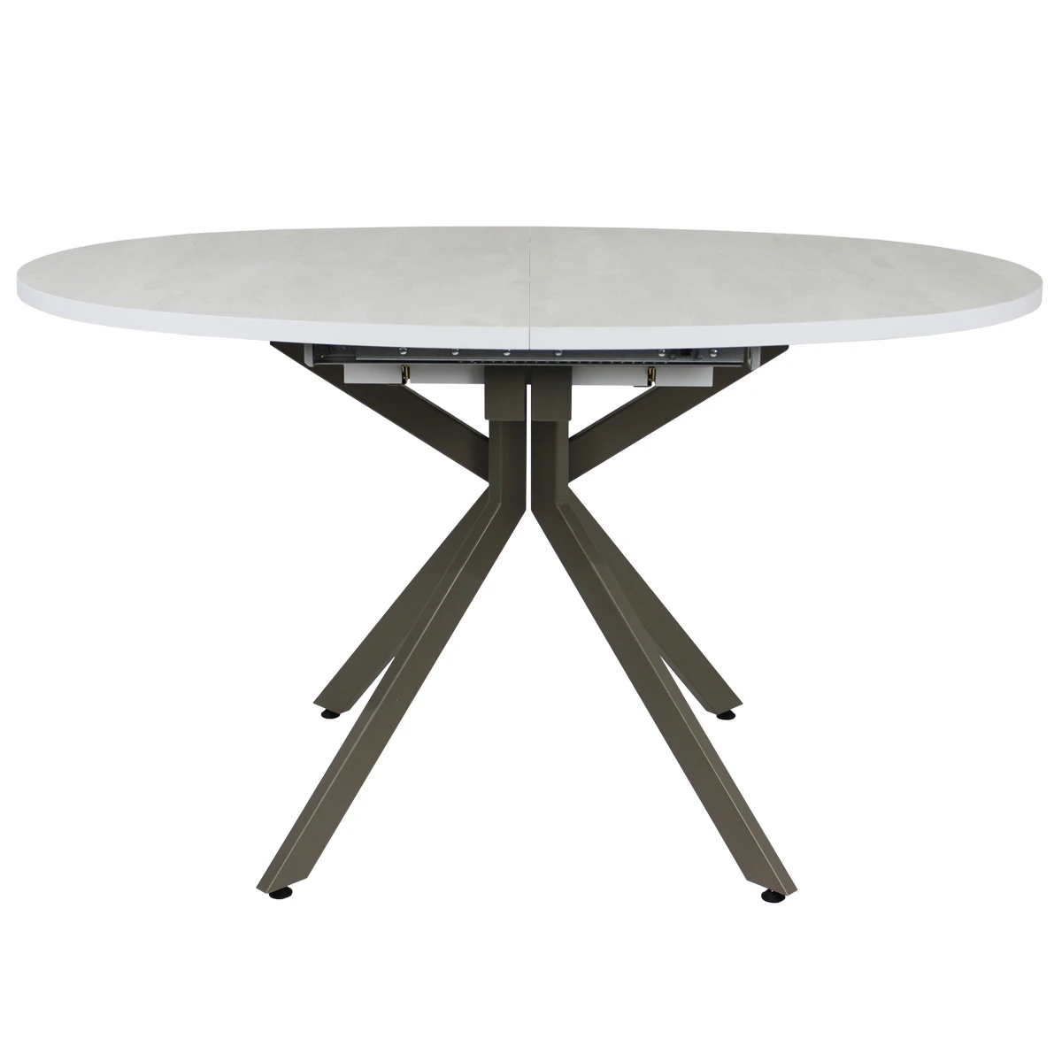 Столешница выполнена из современного ламината австрийского производителя EGGER, который имеет высокие показатели износостойкости и термостойкости. Вставка-«бабочка» исполняется из того же материала, что и основная столешница - это позволяет раздвигать стол без ущерба для эстетики. Раскладка стола производится путём растягивания и удлинения рамы вместе с опорами, таким образом обеспечивается устойчивое положение модели и свободная рассадка 4-8 человек.