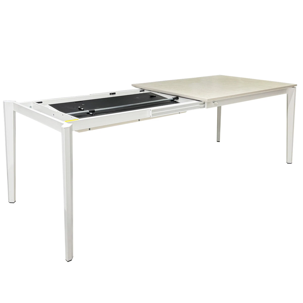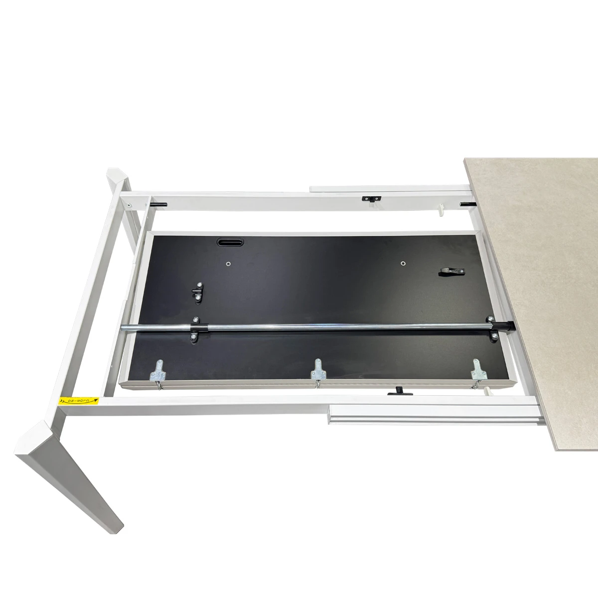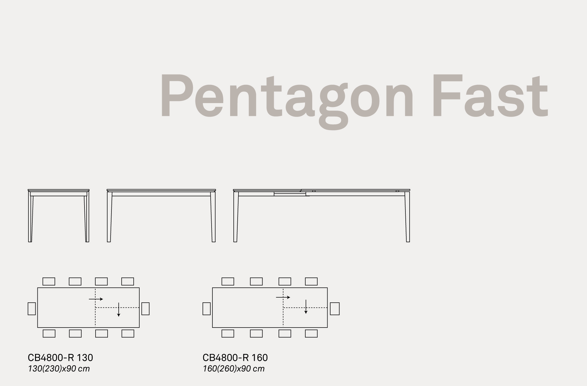 Раскладка Pentagon Fast происходит в бок, с помощью вставки-бабочки длиной один метр. Стол раздвигается путём удлинения металлической рамы, таким образом, обеспечивается свободная рассадка 6-10 человек (для комфортного раздвижения стола, в ножках установлены ролики).