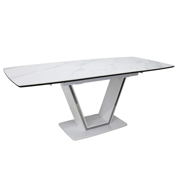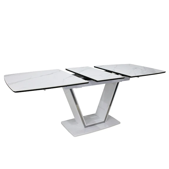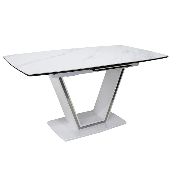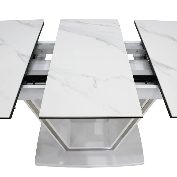 Cтол ВАНКУВЕР-АВТО 89х160/200 керамика бел.мрамор мат/бел+муар.чер ВС/537