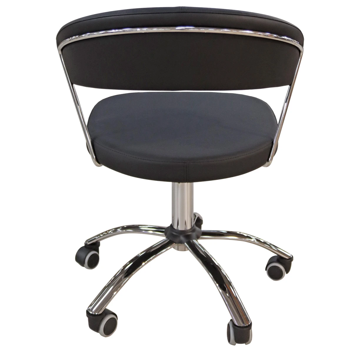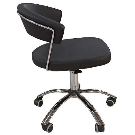 Офисное (рабочее) кресло на металлическом хромированном каркасе, снабжено механизмом газ-лифт и регулируется по высоте, в основании имеются колёсики, которые помогают легко передвинуть кресло.