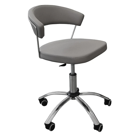 Офисное (рабочее) кресло на металлическом хромированном каркасе, снабжено механизмом газ-лифт и регулируется по высоте, в основании имеются колёсики, которые помогают легко передвинуть кресло.