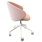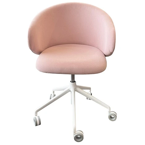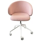 Обивка сиденья и спинки выполнены из современных материалов. Корпус на поворотной центральной опоре из литого алюминия, снабженной системой газлифта, что позволяет регулировать высоту. В основании имеются колёсики.