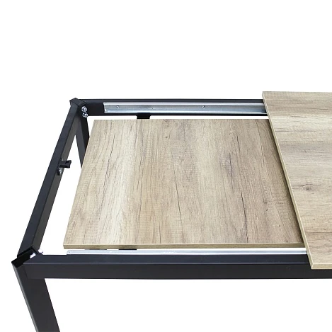 Чтобы разложить стол, необходимо сдвинуть столешницу, вручную установить и зафиксировать дополнительную вставку, шириной 50 см, которая хранится внутри стола. Это обеспечивает свободную рассадку 4-8 человек.