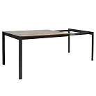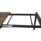 Раскладка стола производится путём растяжки и удлинения металлической рамы, таким образом, обеспечивается свободная рассадка 6-10 человек. 2 вставки, шириной по 50 см, находятся внутри стола, вставляются вручную.