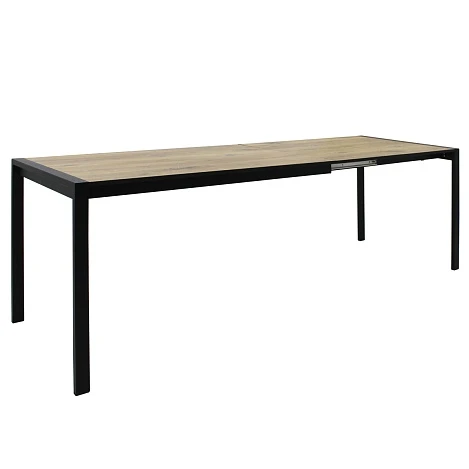 Раскладка стола производится путём растяжки и удлинения металлической рамы, таким образом, обеспечивается свободная рассадка 6-10 человек. 2 вставки, шириной по 50 см, находятся внутри стола, вставляются вручную.
