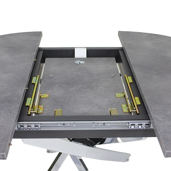 Столешница, толщиной 25 мм, выполнена из современного ламината австрийского производителя EGGER, который имеет высокие показатели износостойкости и термостойкости. Вставка-«бабочка» исполняется из того же материала, что и основная столешница - это позволяет раздвигать стол без ущерба для эстетики.