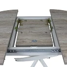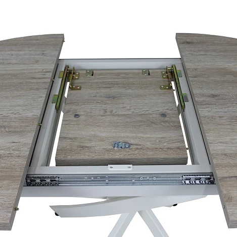 Столешница, толщиной 25 мм, выполнена из современного ламината австрийского производителя EGGER, который имеет высокие показатели износостойкости и термостойкости. Вставка-«бабочка» исполняется из того же материала, что и основная столешница - это позволяет раздвигать стол без ущерба для эстетики.