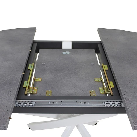 Раскладка производится путём синхронного раздвижения столешницы.