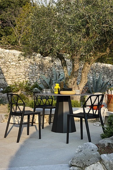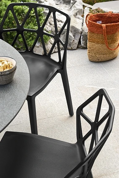 Он имеет матовую поверхность с гравировкой и подходит для использования на открытом воздухе. Эти стулья можно стопировать до 6 штук.