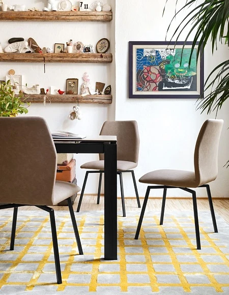 В каталогах CONNUBIA -около 220 моделей столов, стульев, барных табуретов для обеденных зон, столовых и гостиных, столов и кресел для домашнего офиса. Особенность предложения CONNUBIA - очень широкий выбор материалов (дерево, стекло, керамика, металл, меламин, кожа, искусственная кожа, ткани и др.), вариантов цветового исполнения и размеров предлагаемых моделей.
