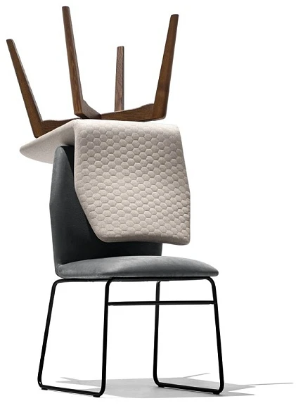 Приз заказе данной модели в рогожке, на спинке стула будет использоваться ткань с шестиугольной прошивкой. Все ткани фабрики CONNUBIA имеют высокий класс износостойкости.