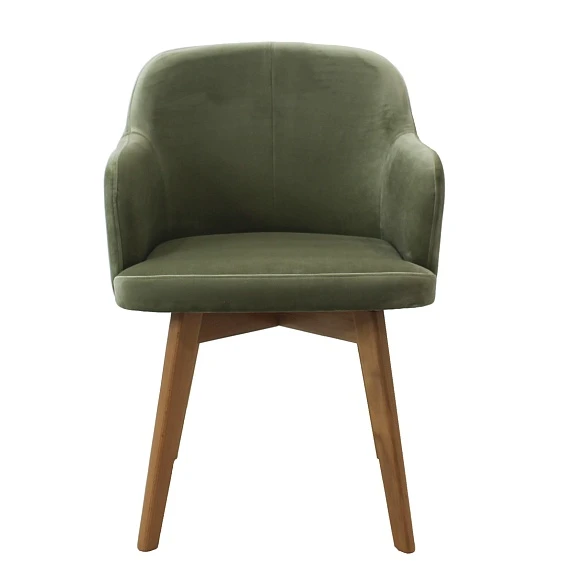 Сама модель выглядит основательно, но не громоздко за счет конусообразных деревянных ножек. Обивка ткани может быть в разных цветовых решениях, можно выбрать в каталоге производителя.
