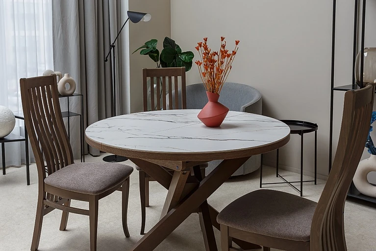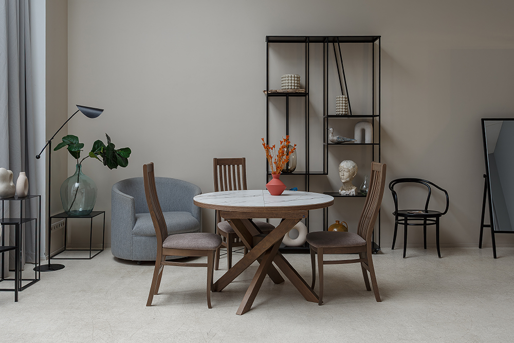 Ассортимент производства компании «Виста» включает более 70 моделей стульев, 20 моделей барных табуретов с каркасами из бука и металла и более 40 моделей принципиально разных столов с ламинированными, шпонированными, стеклянными и керамическими столешницами – от практичного раздвижного кухонного до раскладного стола-трансформера, которые пользуются неизменно высоким спросом.