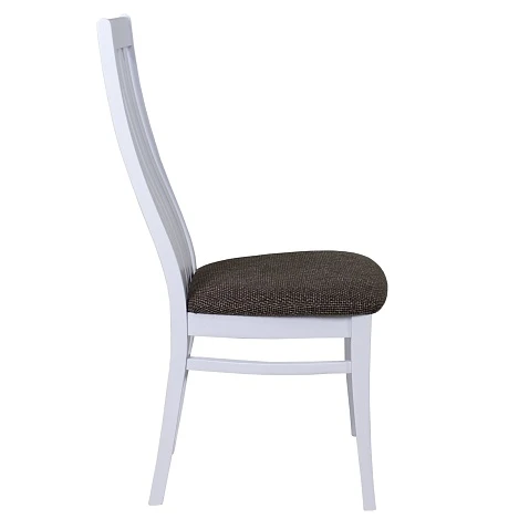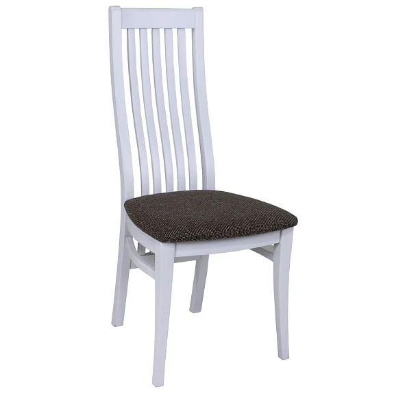 Свободное место между планками, их четкие линии и при этом слегка изогнутые ножки добавляют изделию особой элегантности. А обтянутое тканью сиденье не просто удобное, но и станет органичным акцентом в пространстве кухни, гостиной, столовой. Такой стул идеально дополнит интерьер в стиле современного модернизма.