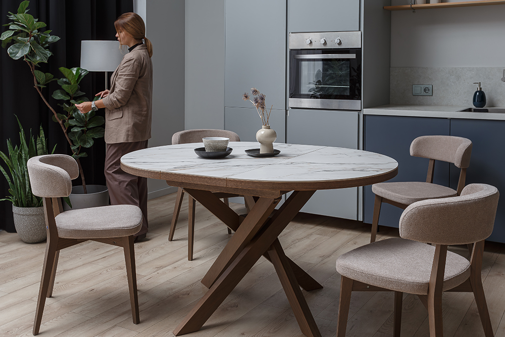 Ассортимент производства компании «Виста» включает более 70 моделей стульев, 20 моделей барных табуретов с каркасами из бука и металла и более 40 моделей принципиально разных столов с ламинированными, шпонированными, стеклянными и керамическими столешницами – от практичного раздвижного кухонного до раскладного стола-трансформера, которые пользуются неизменно высоким спросом.