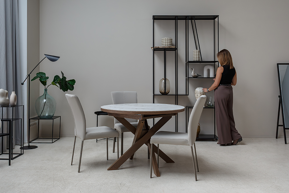 Такой предмет мебели органично дополнит обеденную зону кухни или столовой, станет стильным и функциональным элементом гостиной, вполне органично будет смотреться также в переговорной или приемной офиса.