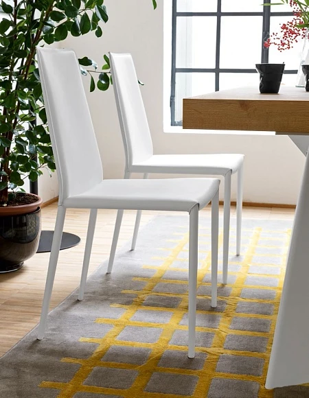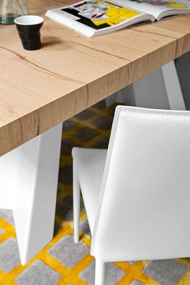 Конические ножки изготовлены из трубчатой стали. Дизайнерское внимание, уделяемое ножкам, можно увидеть также в подходящих цветах рамы и формы сиденья.