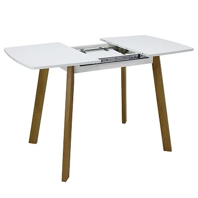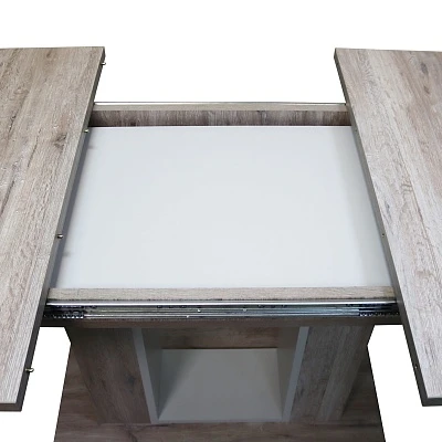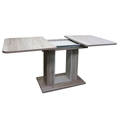Столешница в таких моделях может быть разной: прямоугольные, квадратные, круглые, овальные. Чаще всего их изготавливают из дуба, ясеня, бука или более бюджетных сортов древесины, например, сосны. Раскладной стол из массива дуба – очень долговечная модель, которая не просто выглядит респектабельно, но и очень практична в использовании. Подстолье также выполняется из массива дерева и металлоконструкций. Изделия могут иметь традиционно четыре ножки или быть на одной широкой центральной опоре.