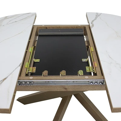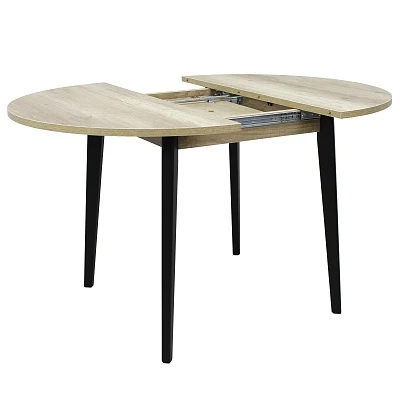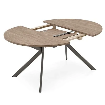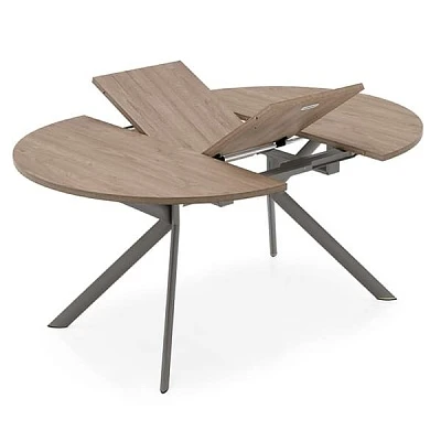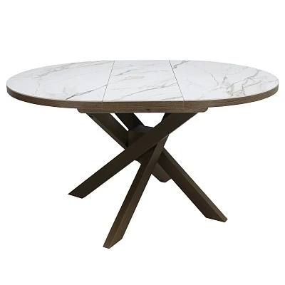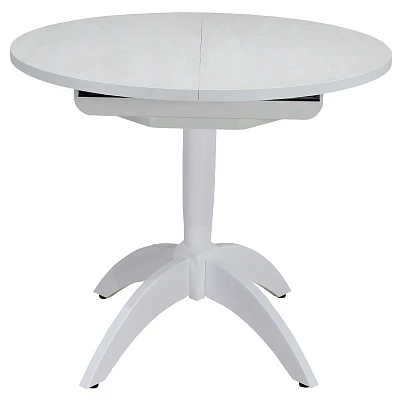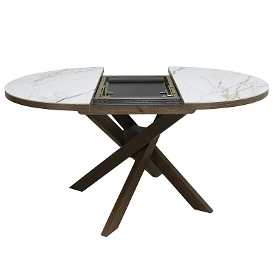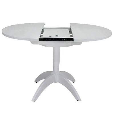 Круглые раскладные обеденные столы можно купить для небольших кухонь и гостиных. В зависимости от механизма трансформации их можно убрать до появления гостей или значительно уменьшить площадь, освобождая полезное пространство. Форма позволяет комфортно разместить максимальное количество гостей.