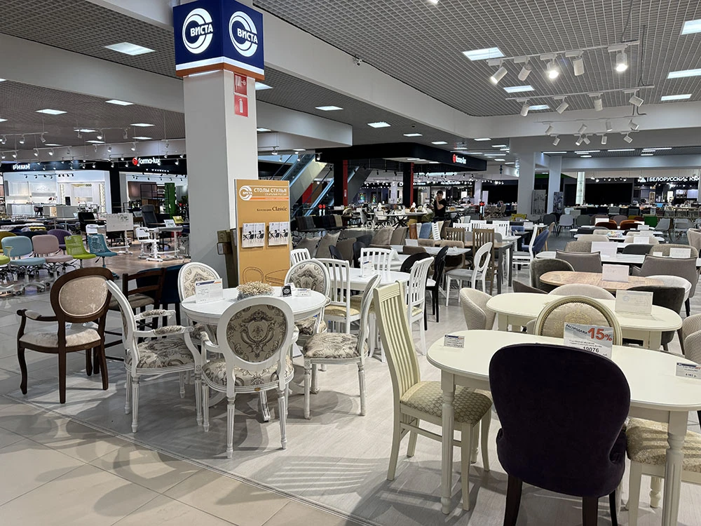 Широкий ассортимент столов и стульев фабрик «Виста» (Россия), Galleria Classico (Италия);