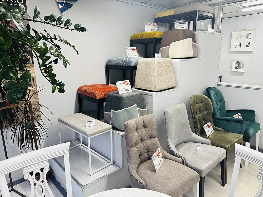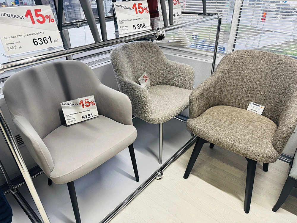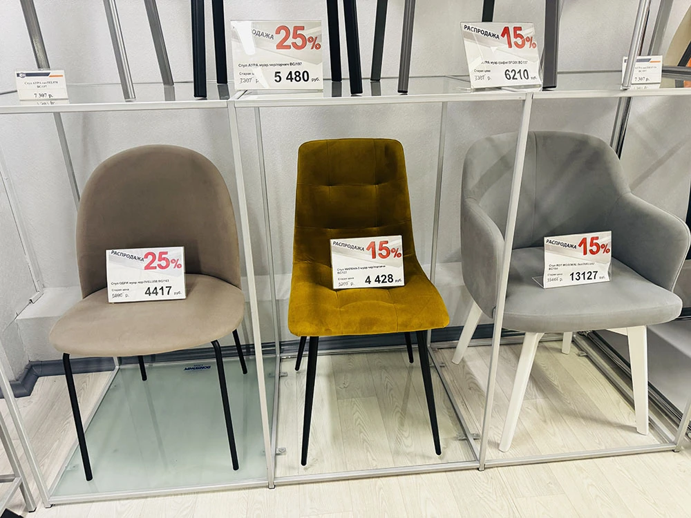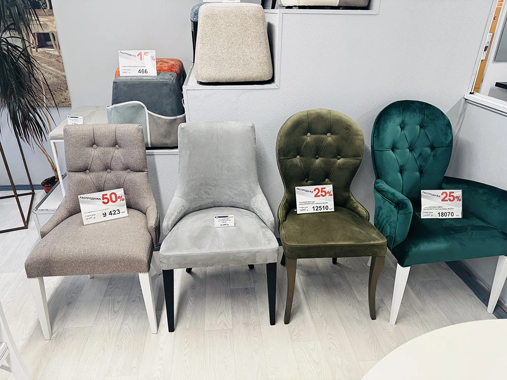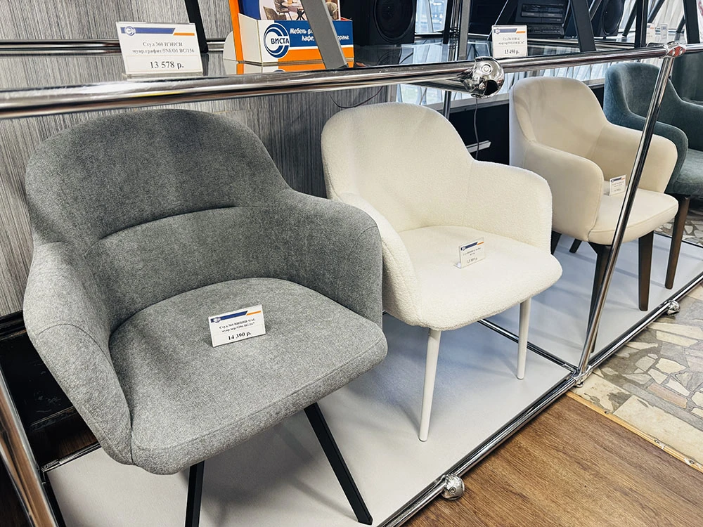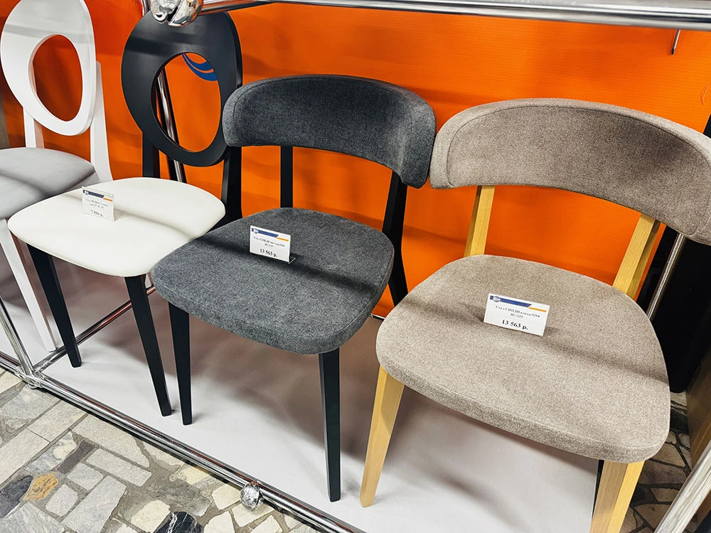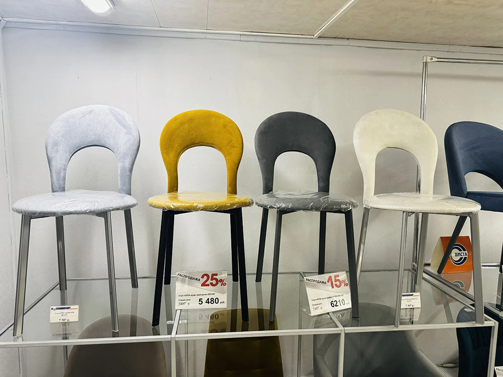 Заказали стулья в сером велюре. Цена низкая по сравнению с конкурентами и даже по сравнению с готовыми стульями. Менеджеры предложили много вариантов тканей на любой вкус и цену. Сделали даже раньше обещанного срока.