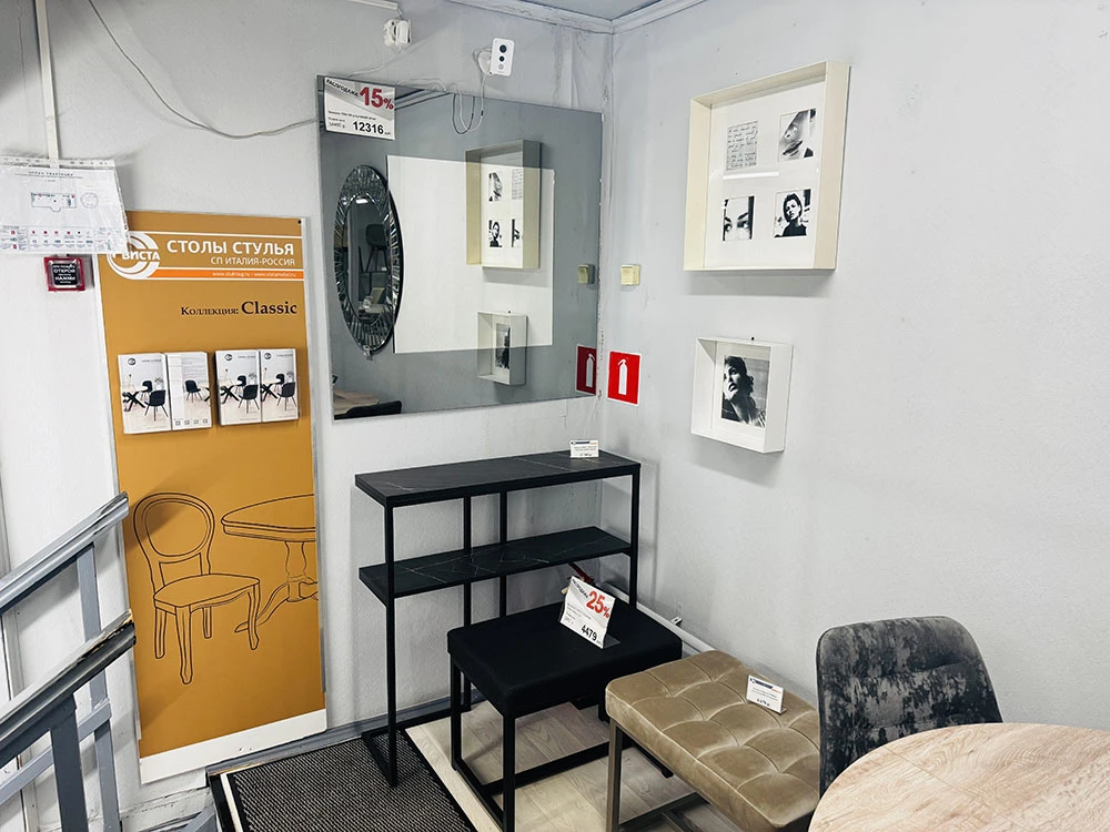 Общая торговая площадь магазина "СТОЛЫ - СТУЛЬЯ" на Окской д.2/15 к.3 около 300 кв. м., расположен на двух этажах.