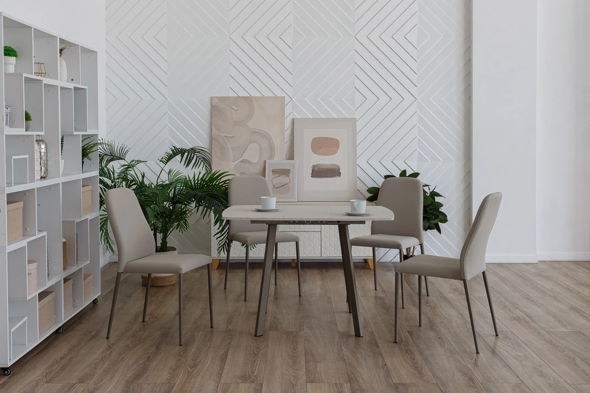 Cтол МИЛАН-4 ПН 80х80/110 кварц беж/муар.тортора ВС/450
